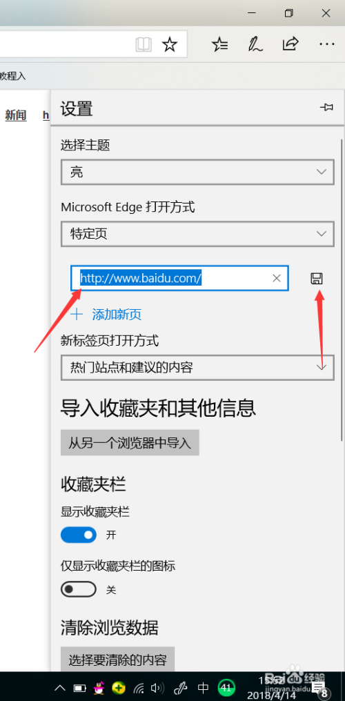 然后鄙人面的编纂栏内输入我们喜好的浏览器本家儿页,如图输入百度。然后点击右侧的保留按钮。