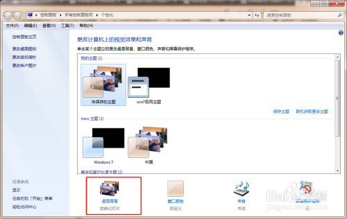然后点击新弹出窗口的桌面布景,如下图中红框标识的区域。