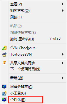 打开电脑,然后点击右键,选择个性化(R),如下图所示。