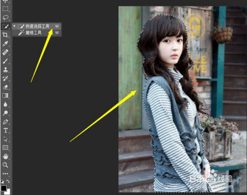 第二步,点击利用快速选择东西,对你要抠的部门进行涂抹