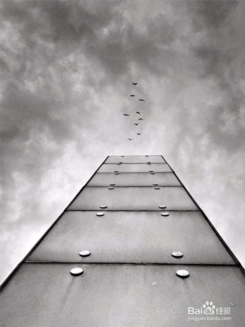 什么是节拍与韵律?简而言之:同一特征下的有序反复。这张照片是很有节拍感的,例如近处的建筑、地面的线条等,可是画面的节拍感较着不强,本家儿如果没有做到 有序反复 。我们从下往上拍摄,这时辰画面的节拍感就更强了,线条、圆形、三角形这是同一特征,它们的分布也还比力有纪律,这是有序反复,最终就形当作了一幅加倍美好的画面。