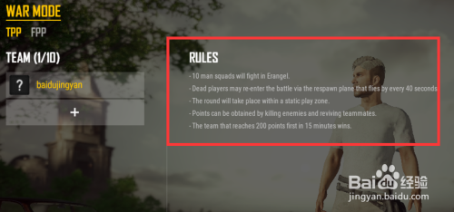 点击弹出的窗口之后会转到一个新的起头游戏界面,在这个界面我们可以看到右边的游戏法则,固然是英文显示的,可是年夜致的意思大师也可以理解,就是在10分钟之内会有3对人进行战斗,每队10小我,划定时候击杀最多即为胜利。