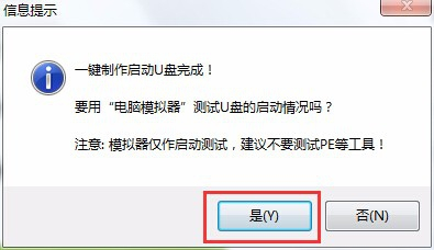 完当作写入之后,在弹出的信息提醒窗口中,点击“是(Y)”进入模拟电脑。如下图所示