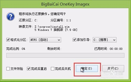 在弹出的窗口中,默认选择即可,直接点击“确定(Y)”起头系统还原操作。如下图所示