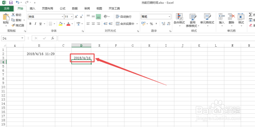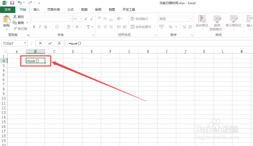 然后点击输入输入日期或者是时候的单位格,如要在B2输入当前日期时候。