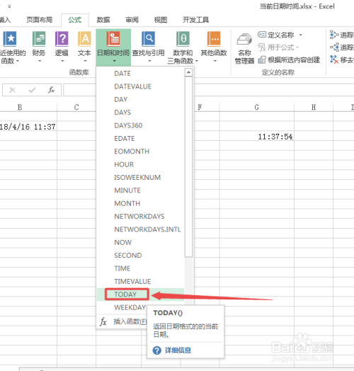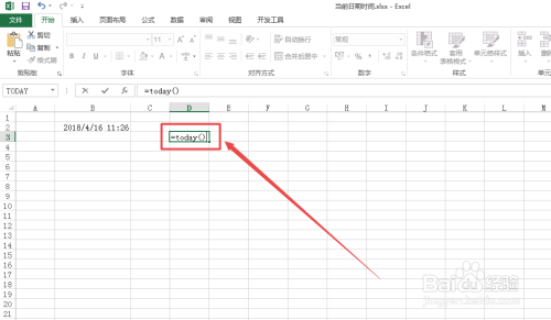 若是要输入当前的日期,则输入 =today() ,然后回车,即可输入当前的日期。