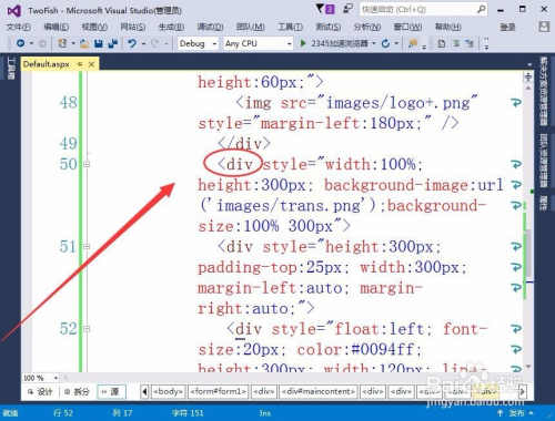 打开Visual Studio,新建一个网站定名为TwoFish,在网站中建造一个网页定名为Default.aspx。