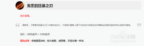 ‘羊刀’别名‘鬼索的狞恶之刃’,8.6版本受到年夜改,可是以超高的性价比和极强的晋升能力染指装备榜,此次拳头天然不会放任这个粉碎均衡的装备,总价变高,已经不克不及作为首选了;