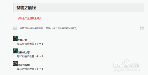 ‘圣物之盾’,作为工资装,确实是比力强的装备,一些前期发育为本家儿的英雄也会选择 它做出门装 (好比 船主),所以它 的金币收益又被砍了...(感受算是比力厉害的减弱...)