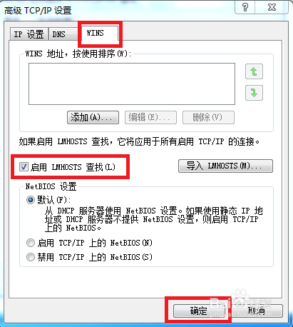 在【高级TCP/IP设置】界面中点击【WINS】选项,找到【启用LMNOSTS】并在前方把【√】给去失落,点击【确定】,如许就设置好了,回到游戏看是否解决了这个问题。