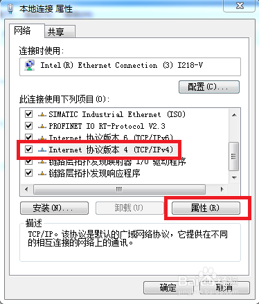 在【属性】界面中找到【Internet 和谈版本4(TCP/IPv4)】并鼠标选中,点击下方的【属性】。