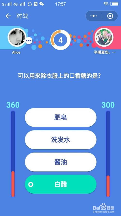 3、日用:可以用来除衣服上的口喷鼻糖的是?准确谜底:白醋。