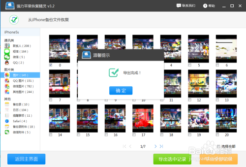 4、选定图片之后,点击“导出选中记实”,数据恢复软件就会立即把你的图片恢复到你的苹果手机里面。